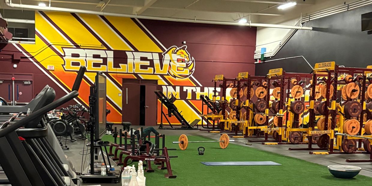Completely renovated in 2023 thanks to amazing admin and donors that include the Las Vegas Raiders. Eldorado host one of the top fitness centers in the state. The room has rows of cardio equipment across from several rack and weight stations, touch screen displays for game planning and all Eldorado branded equipment in our favorite colors, maroon and gold.